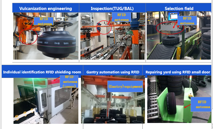 readers, electronic labels (antennas, chips) and information management systems.